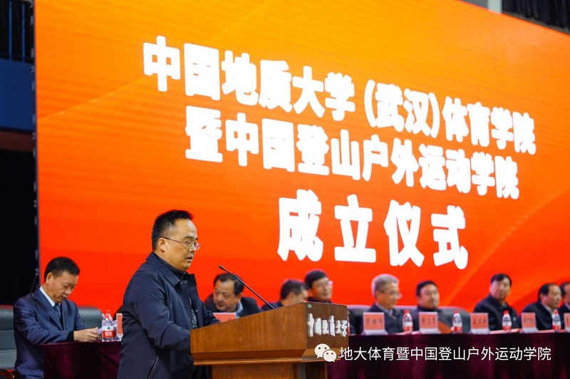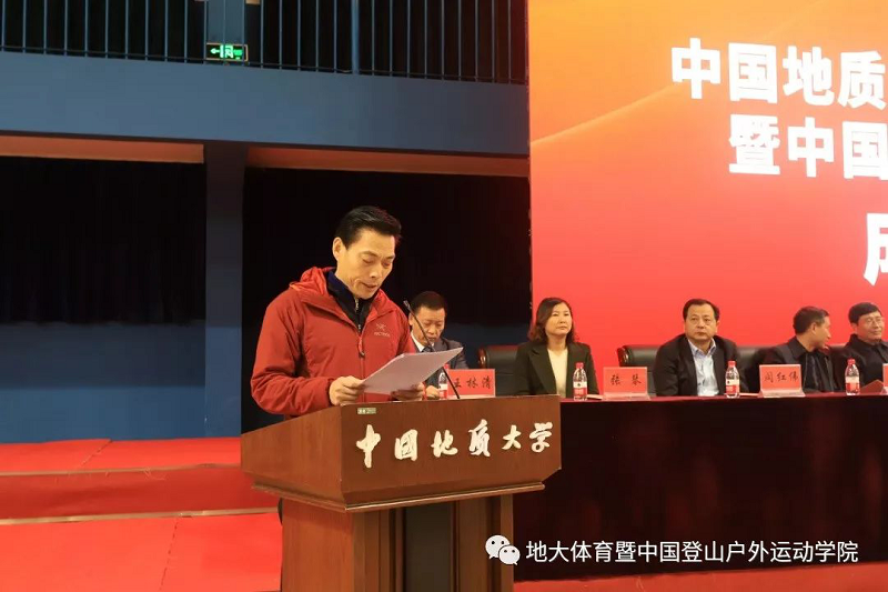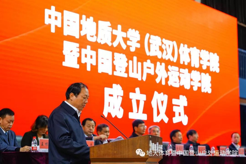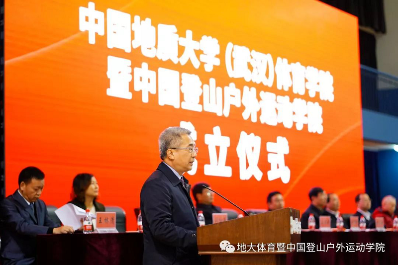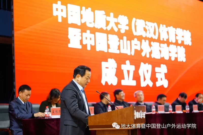 湖北省体育局局长胡功民同志在致辞中表达了对中国地质大学(武汉)成立beat365中文登录入口和中国登山户外运动学院的祝贺,表示学院的成立对湖北省户外运动有着时代性的意义。