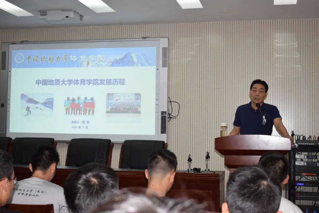 十分钟后,院长董范老师为beat365中文登录入口新生的开了堂开学第一课。这堂课名为《beat365中文登录入口的发展历程》,董范老师细数了近七十年来beat365官网体育方面取得的辉煌成就,其中包括各种大赛累积的上百枚金牌,以及前几年刚刚被评选为全国群众性体育先进单位,许多特色项目如攀岩游泳在全国乃至亚洲都处于上流。