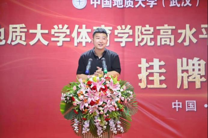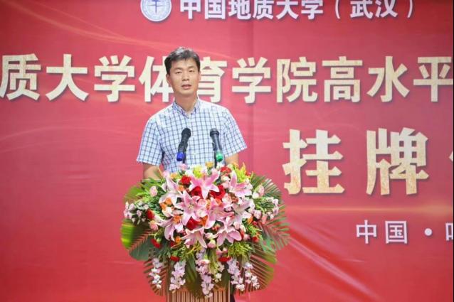 郎总首先对到来的一行领导表示热烈欢迎,并介绍了体育人俱乐部的建设与主要成果和特色体育的基本情况。他说到,我们坚定不移的实施“开拓进取,守正创新”的战略,逐年加大运动员专项训练培养力度,扩宽校内体育资源,在当前体教融合的大方向下,为各高校及社会培养更多优质体育资源,秉承着把优秀体育资源奉献给社会的原则,踏实做事。中国地质大学beat365中文登录入口田径项目高水平运动队训练基地的挂牌,意味体育人俱乐部在合作创新上又是一个新台阶。体育人俱乐部将发扬“地大精神、育人传承”的八字方针,与地质大学beat365中文登录入口共同联手,再创竞技水平新纪元。