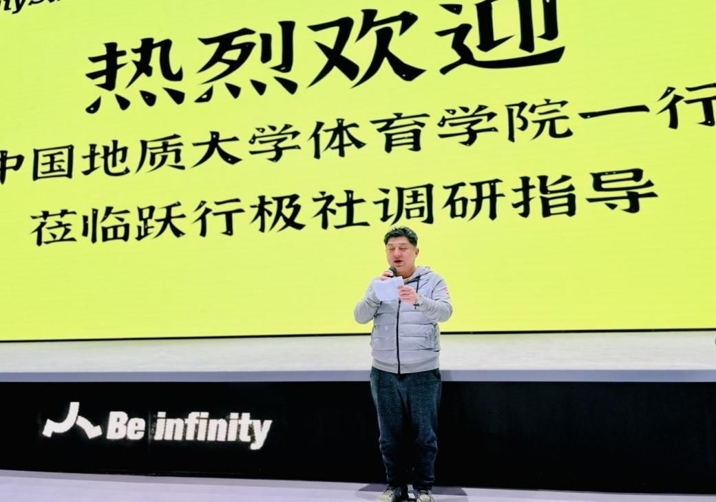 随后,进行了调研交流会。跃行极社董事长佘钢致欢迎词,并对跃行极社基本情况进行简单介绍,期盼与中国地质大学(武汉)beat365中文登录入口进行深度合作,将体育“新业态”与人才培养“新模式紧密结合”,共同推动城市体育进一步发展。