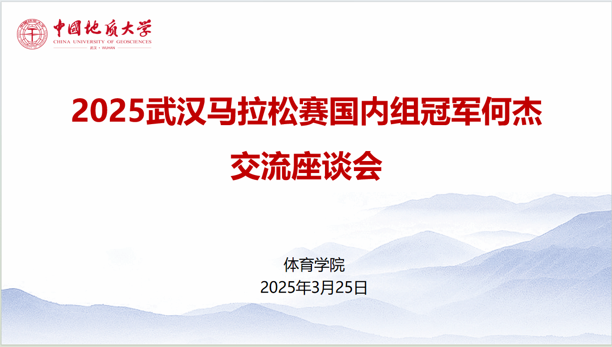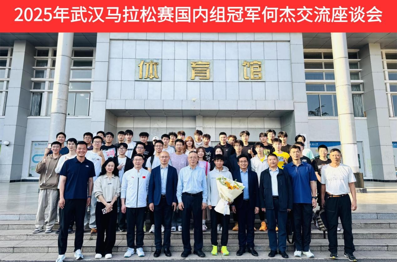 (通讯员 朱军 孙宜帆 杨麦琪)为发挥朋辈示范引领作用,赓续弘扬攀登精神,激励广大师生坚定意志、奋发向上,beat365中文登录入口于2025年3月25日下午16点,在体育馆三楼党员之家举行2025年武汉马拉松赛国内组冠军何杰交流座谈会。校党委副书记唐忠阳、党委学工部部长朱丹、beat365中文登录入口党委书记何建新、院长李元、党委副书记朱军、副院长李伦、秦长胜副教授、高水平运动队管理办公室主任褚鹏飞及学生代表参会。会议由院长李元教授主持。