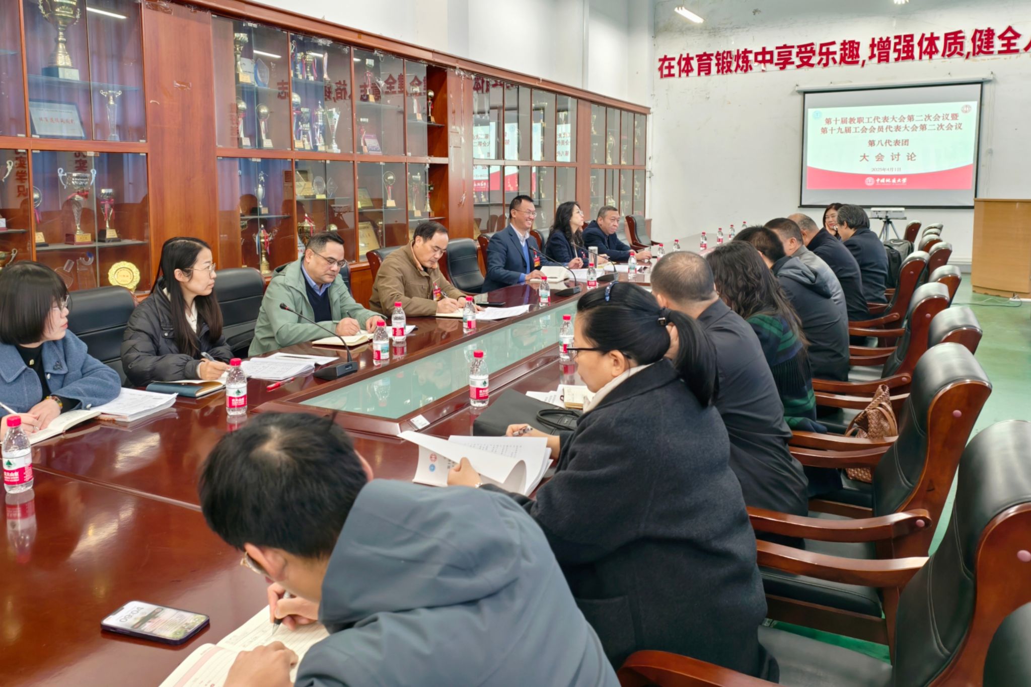 (通讯员 何鹏飞)4月1日上午,学校两代会第八代表团在南望山校区西区体育馆举行讨论会。第八代表团由外国语学院、数理学院、艺术与传媒学院、beat365中文登录入口代表组成,共有正式代表34人,列席代表10人。学校党委副书记、纪委书记唐忠阳以及校园规划与基建处、人力资源部、本科生院、科学发技术发展院、财务与资产管理部等部门负责同志参加讨论会。会议由第八代表团团长、beat365中文登录入口党委书记何建新主持会议。