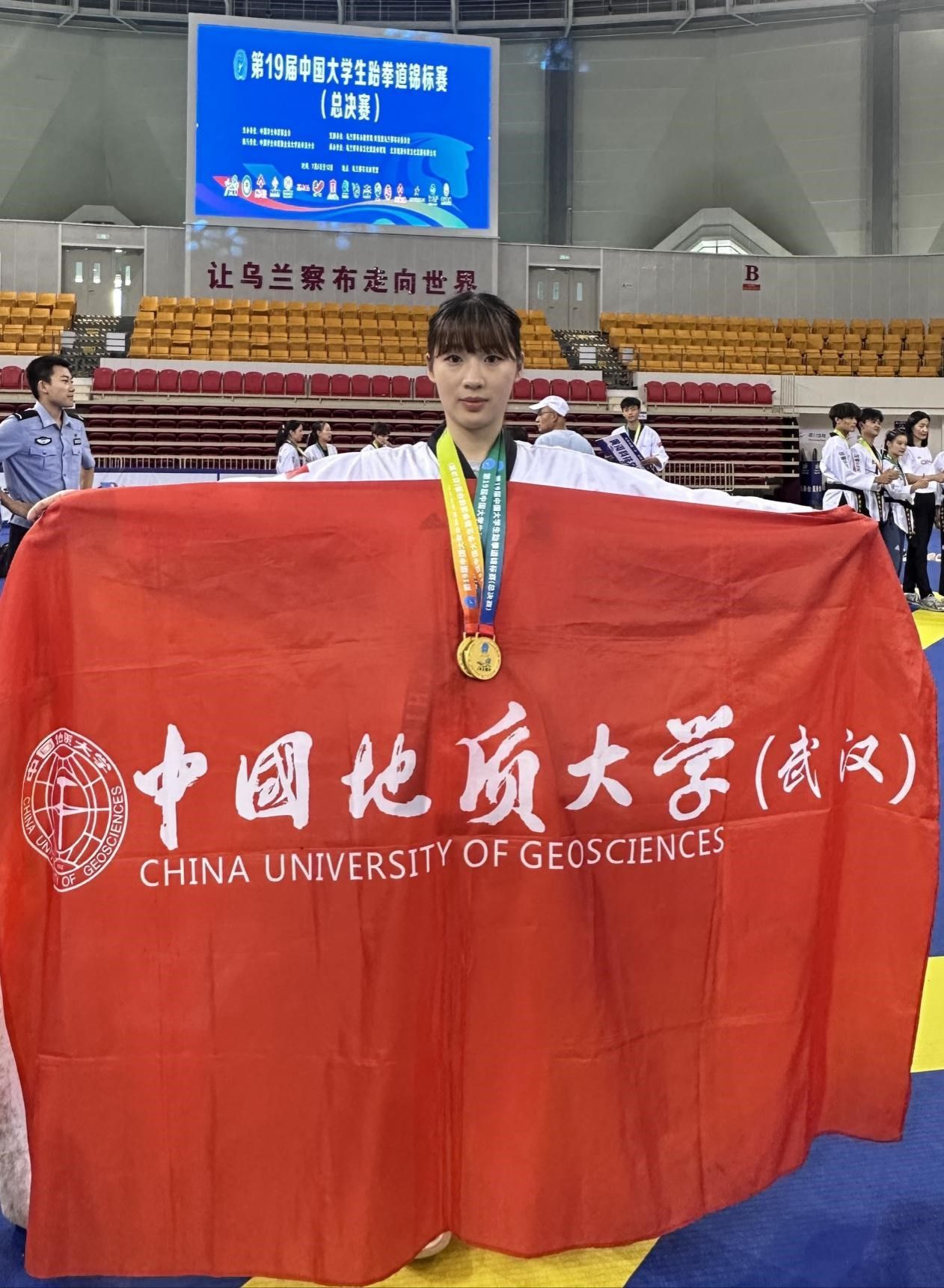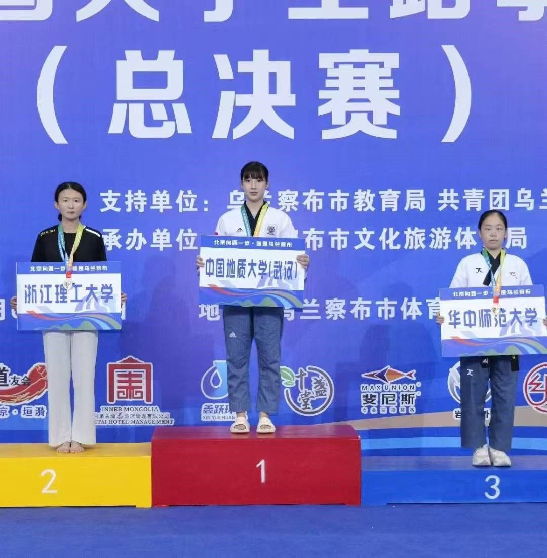 7月6日至11日,第19届中国大学生跆拳道锦标赛(总决赛)在内蒙古乌兰察布市体育馆举行,本次比赛由中国学生体育联合会主办,中国学生体育联合会大学跆拳道分会执行,共有来自全国155所高校的1090名运动员、教练员参赛。beat365官网跆拳道队谢欣怡同学参加了甲组女子个人高阶品势和甲组女子个人段位品势两个项目的比赛。
