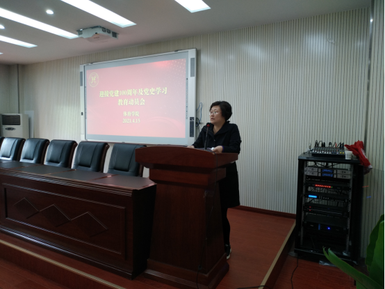 庞书记首先代表学院党总支介绍学院党史学习及迎接建党100周年方案并做动员讲话,接着李春卉老师介绍了本院学生党史学习教育方案,最后由马克思主义学院刘世勇书记作党史专题讲座。
