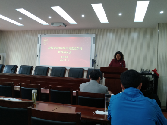 (通讯员:江伟贤)为深入学习贯彻习近平总书记在党史学习教育动员大会上的重要讲话精神,全面贯彻落实党的十九大和十九届历次全会精神,深入开展党史学习教育,围绕庆祝中国共产党成立100周年,教育引导学院师生进一步增强“四个意识”、坚定“四个自信”、做到“两个维护”,4月15日beat365中文登录入口在体育馆三楼科报厅召开“迎接建党100周年及党史学习教育动员大会”,学院党总支书记庞岚主持会议,马克思主义学院刘世勇书记及beat365中文登录入口全体教职工参加了此次大会。