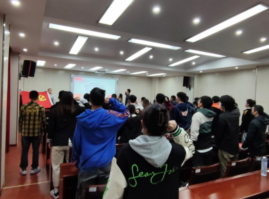 新一届支部委员会重温入党誓词。宣誓仪式由学院党委副书记朱军担任领誓人,全体党员面对党旗郑重宣誓。