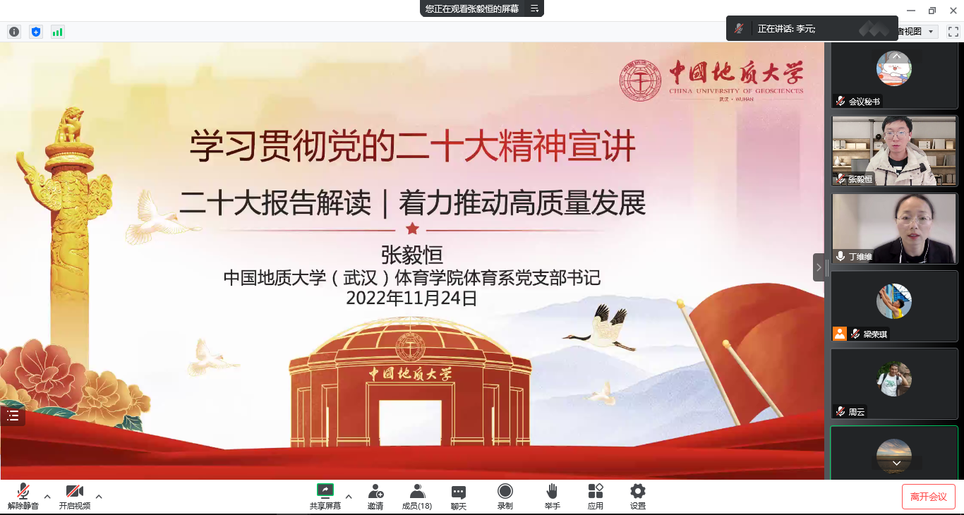 (通讯员:丁维维)11月24日下午,beat365中文登录入口体育系党支部组织开展题为“学习宣传贯彻落实党的二十大精神”的主题党日和廉政党课活动。本次学习活动通过线上形式进行,由支部宣传委员丁维维同志主持。