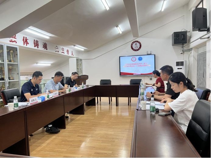 上午,在中国地质大学(北京)体育部开展调研交流学习。会上中国地质大学(北京)体育部主任马凯着重介绍了学校体育开展的基本情况,副主任张源介绍了学校体测工作的基本情况。在李伦副院长表明此次调研学习目的后,beat365中文登录入口群体中心主任汪俊杰主任,体测办公室主任丁维维主任,高水平办公室主任褚鹏飞主任分别就群众体育、大学生体质健康测试、高水平队伍管理等内容开展深度交流。
