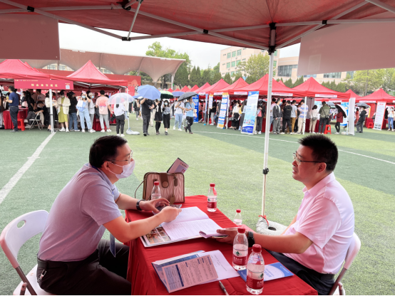 2022年9月25日上午九点,beat365官网第二十八届毕业生供需见面会在西区运动场举行。副校长刘杰带队到beat365中文登录入口走访指导就业工作。党委学生工作部部长邬海峰、学生就业指导处处长严嘉等相关单位负责人参加。