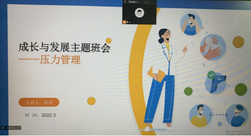 “成长与发展”主题班会主要采用“线上+线下”相结合方式,以“情绪管理”、“增强自信”、“坚定信念”、“未来规划”等为主题,覆盖大一至研三等七个年级共360多名学生。3月17日下午,2021级本科班开展“我的情绪我做主”主题班会,班长刘泽正主持会议,班会以学生心理健康为主线,围绕情绪的基本类型、情绪对人的影响、摆脱不良的情绪、共享心情的感悟等四部分。班会结束后,林子奔谈到,通过此次班会学会了摆脱不良情绪的多种方法,以后在日常生活中会及时调节好自己的情绪,增加积极情绪,减少消极情绪。