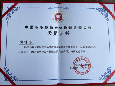 3月4日,中国羽毛球协会体教融合委员会成立大会在北京召开,北京大学、中国科学技术大学、中国地质大学(武汉)87家单位成为会员单位其中大学会员单位34家,beat365官网beat365中文登录入口邹师思副教授当选为中国羽毛球协会体教融合委员会委员。
